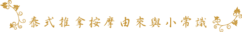 泰式推拿按摩起源於印度的瑜珈術,約在西元前2至3世紀時期,隨著佛教信仰傳到了現今的泰國一帶,所以「泰式推拿按摩」可謂名符其實的千年傳統技藝。在泰國早期古法推拿按摩是從寺廟僧侶傳到民間的,它是人們生活的一部份,在居家生活當中,不論是家人或朋友之間都經常會互相推拿按摩來保持身體健康,但早期這項傳統保健技術並未有系統的傳承下來。
